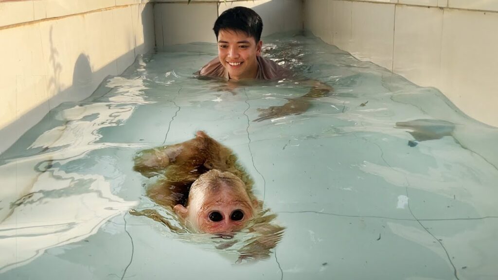 Beside him was his best friend, Thang, another mischievous young monkey who loved to splash and play in the water. While most monkeys hesitated to get wet, Luk and Thang were different. They seemed to love the water, and the pool had become their favorite playground.