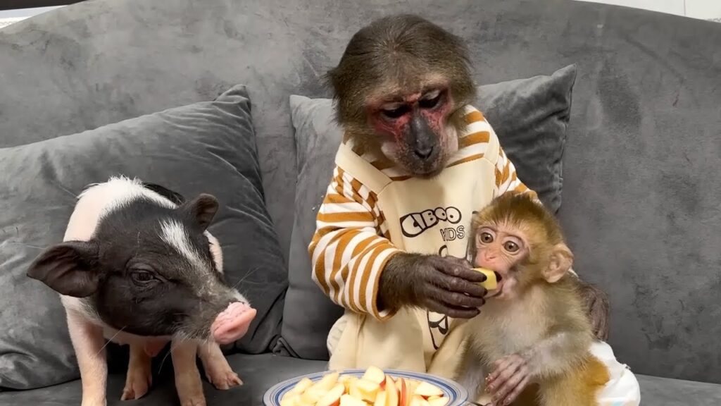 YoYo Jr has always been known as a playful and curious little monkey, but today he showed a completely different side of his personality — a caring and responsible one. Early in the morning, the sun was just peeking over the trees, casting a warm glow over the yard. YoYo Jr’s dad was already awake, preparing food and tidying up the space for the day. In one corner, little YiYi, the youngest member of their monkey family, was sitting quietly, looking around with big, innocent eyes.