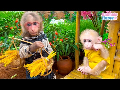 Finally, the cakes were ready — soft, golden, and steaming with warmth. BiBi placed them on a leaf plate and handed one to Obi. The little monkey took a bite, his eyes lighting up with joy. He munched happily, swinging his tail and squealing with delight.