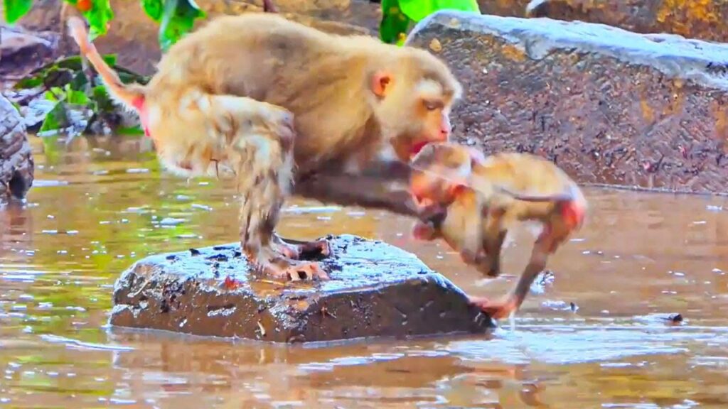 Joyce wasn’t looking her usual playful self. She marched straight toward Jacee with a determined, almost mischievous look in her eyes. Jacee, still giggling and unaware of what was about to happen, reached out to grab another handful of water. Then it happened. In one sudden movement, Joyce pushed forward, making direct contact with little Jacee and sending him tumbling into the pond.