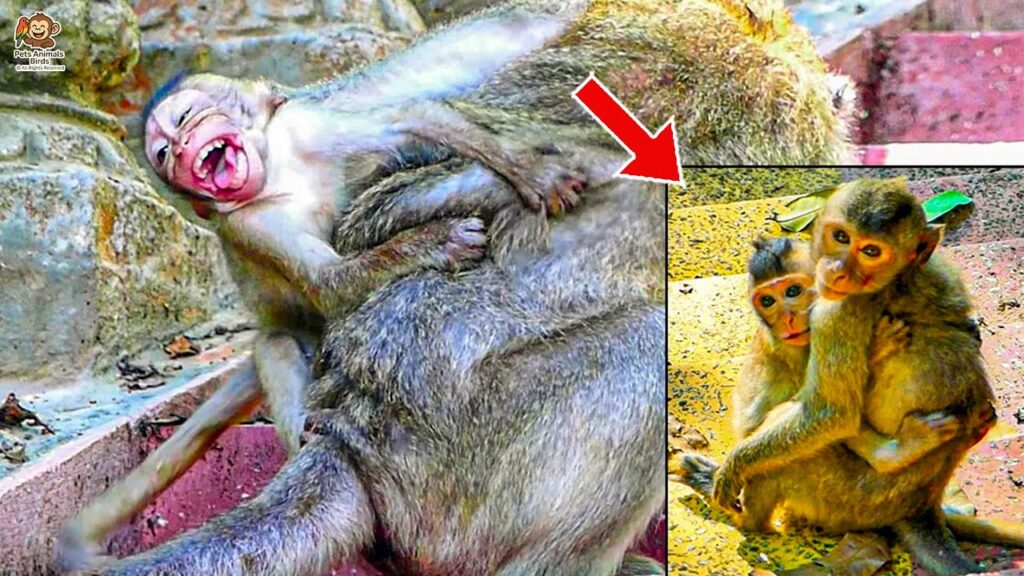 The Pigtail monkeys are usually larger and more dominant, known for their territorial behavior. On this particular day, their aggression was unmatched. With loud shrieks echoing through the trees, they charged into the Long-tail groupβs area, chasing mothers and babies who tried desperately to escape. Tiny infants clung tightly to their mothersβ bellies while older juveniles scattered in confusion. The air was filled with cries β not of play, but of pure fear.