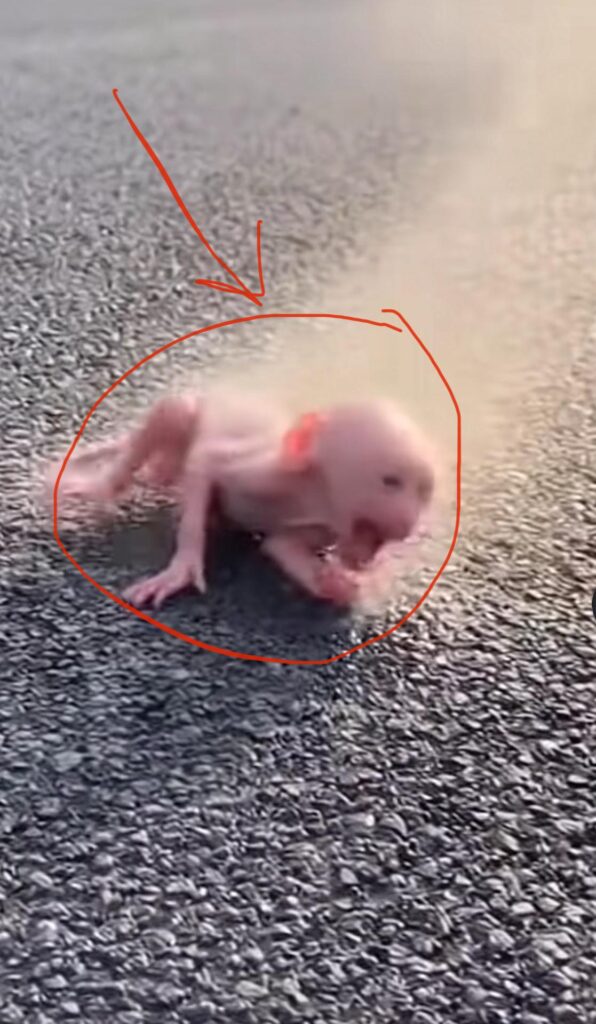 Susan looked down with a mix of tenderness and confusion. Her motherly instincts were strong, even though her own baby hadn’t been born yet. She gently touched the little one’s head, her fingers brushing away the dirt and leaves stuck to his fur. For a moment, it looked like she might let him nurse, but nature held her back—she had no milk yet to give.