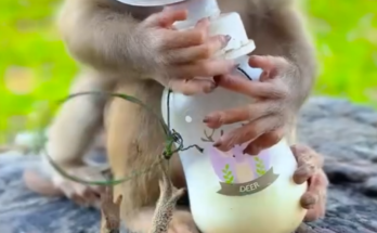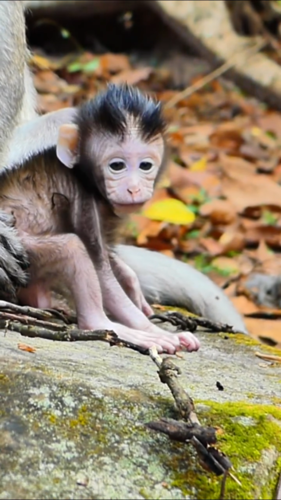 Life begins tenderly in the heart of the forest, where every breath of wind carries stories of survival, warmth, and the deep bond between a mother and her newborn. On one quiet morning, a tiny newborn monkey entered the world—fragile, pink-skinned, and still learning how to stretch his little fingers toward the light. His eyes were not fully open, yet his tiny heart already understood one thing: he needed warmth, he needed comfort, and above all, he needed milk from his mother.