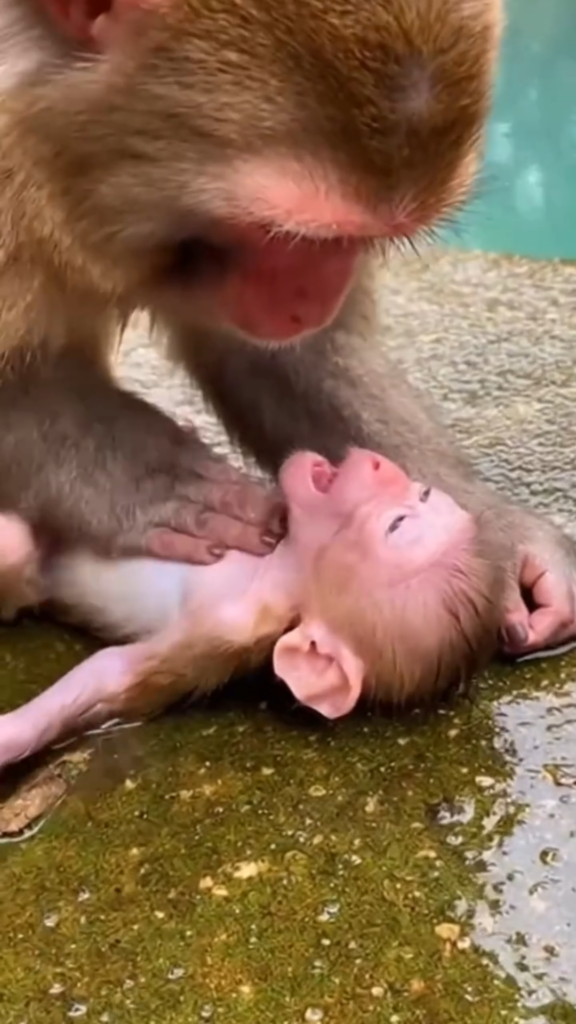 Jade’s heart thundered. She shoved herself forward despite her pain, pushing her baby out of the monkey’s grip and shielding it with her own body. Her limbs trembled, her old injury flared, and her breath came in ragged bursts, but she refused to move aside.
