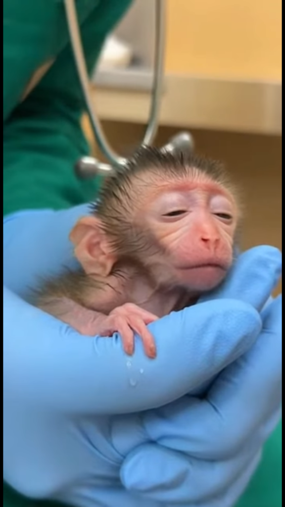 He wrapped the baby in his scarf and carried it out of the mine, ignoring the curious stares of his coworkers. Outside, under the open sky, he gently cleaned the monkey’s face with water from his flask. The baby whimpered softly, then calmed, sensing safety for the first time since its ordeal began.