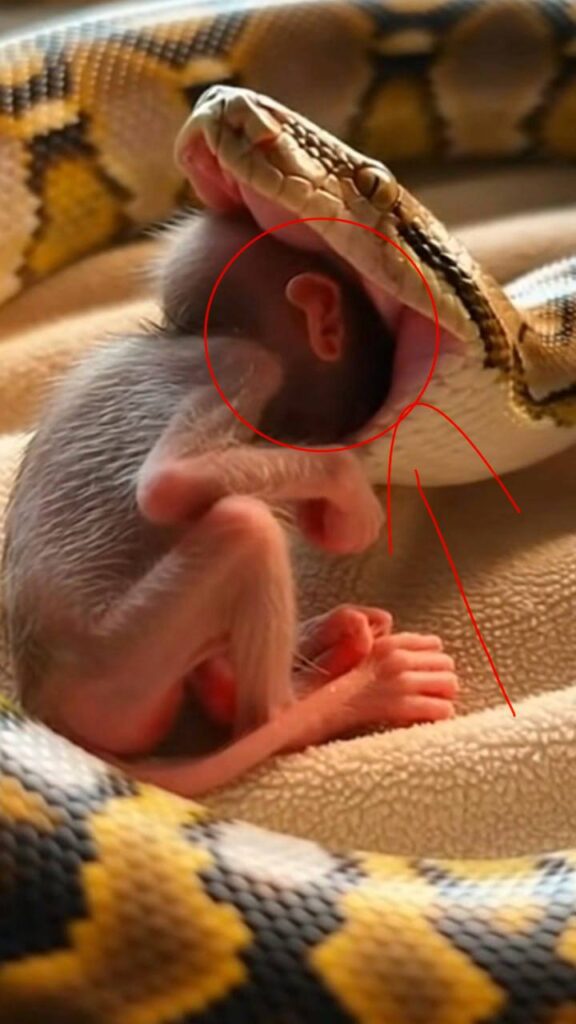 In the natural world, survival often unfolds in ways that are difficult for humans to witness or understand. One such moment occurred deep within a tropical forest, where a giant python and a newborn monkey crossed paths—an encounter that reminds us of both the beauty and brutality of nature.