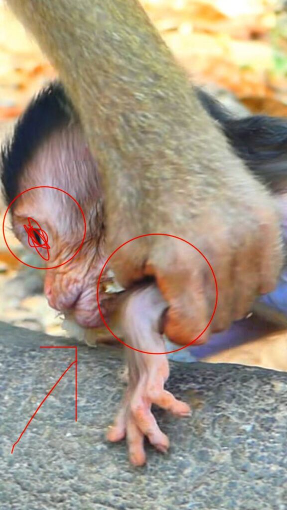 Anyone watching might feel a rush of concern. The baby monkey’s ribs showed through his thin fur, and his movements seemed slow and tired. His eyes looked wide and confused, as if he didn’t understand why he had to keep moving when his body felt too weak to continue.
