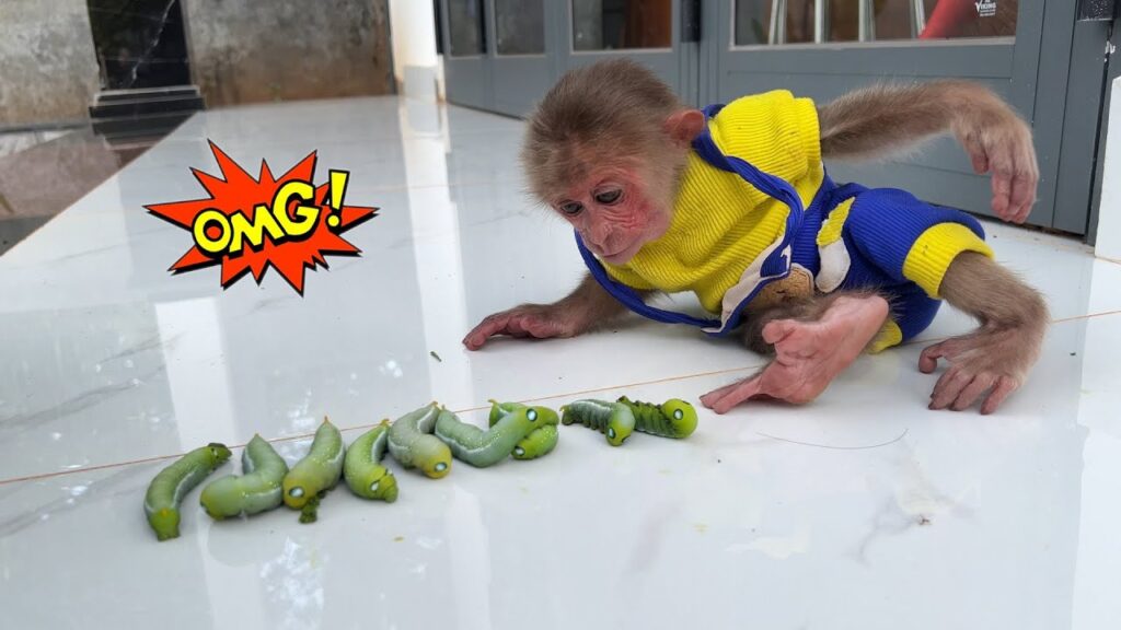 They were crawling everywhere—on the ground, on the leaves, even on the vines hanging above. Some were green and fuzzy, others were yellow with spots, and a few had tiny orange horns.