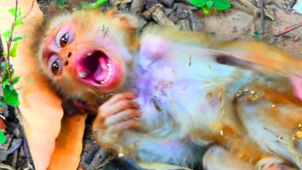 The jungle was peaceful that morning, filled with the gentle sounds of birds calling and leaves rustling in the breeze. But the calm was broken suddenly when baby monkey Lily let out a loud, panicked squeal. Something was wrong.