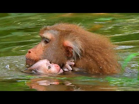 It was a beautiful, warm day in the forest, and the gentle sounds of birds chirping filled the air. Near a large, clear pool of water, mother monkey Libby was about to introduce her baby, Leo, to something brand new—his very first bath in the big pool. The moment was full of emotion, curiosity, and a little fear, especially for baby Leo, who had never seen so much water before.
