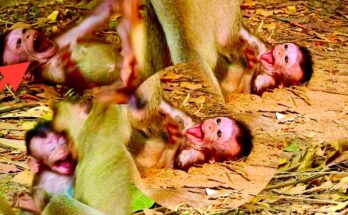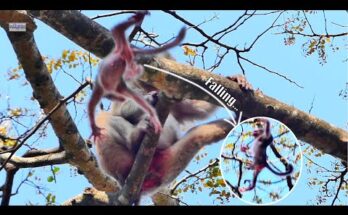 First Seeing old MaMa pigtail r-e-j-e-c-ted to a-b-a-ndon & d-r-o-p newborn 1 day old from high tree Read More