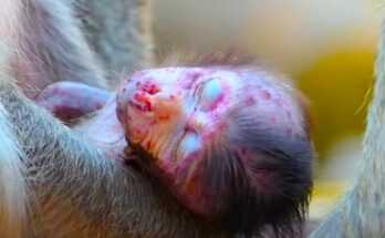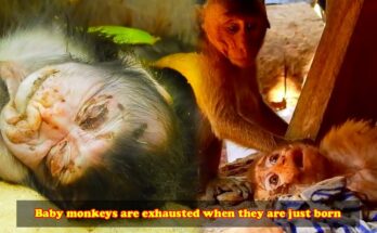 In the dense, humid forests on the edge of a small village, a heartbreaking scene unfolded — a newborn monkey, barely hours old, was found clinging weakly to life. Frail, …
